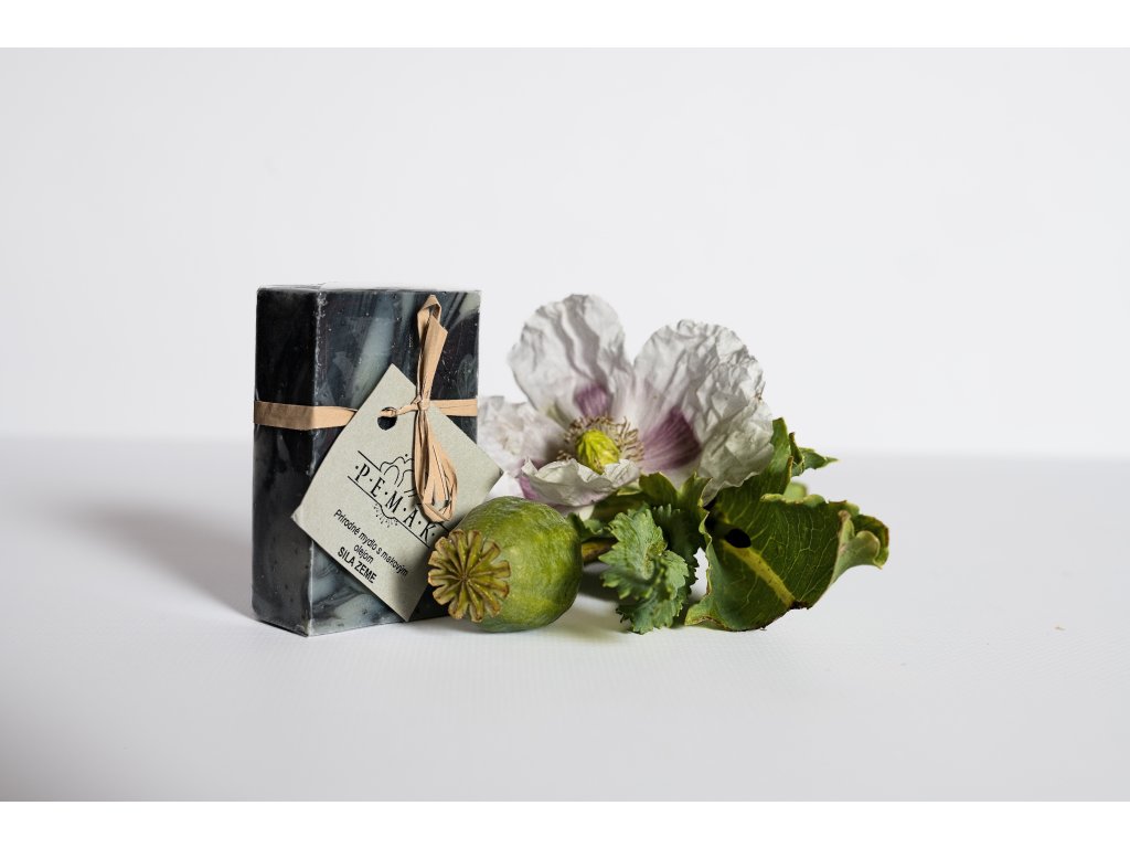 Přírodní makové mýdlo Síla země - peelingové mýdlo s makovými semínky pročistí pokožku a minerály, obsažené v olejích ji dodají sílu, pružnost a vitalitu. Díky vysokému obsahu makového oleje je vhodné pro citlivou a poškozenou pokožku.