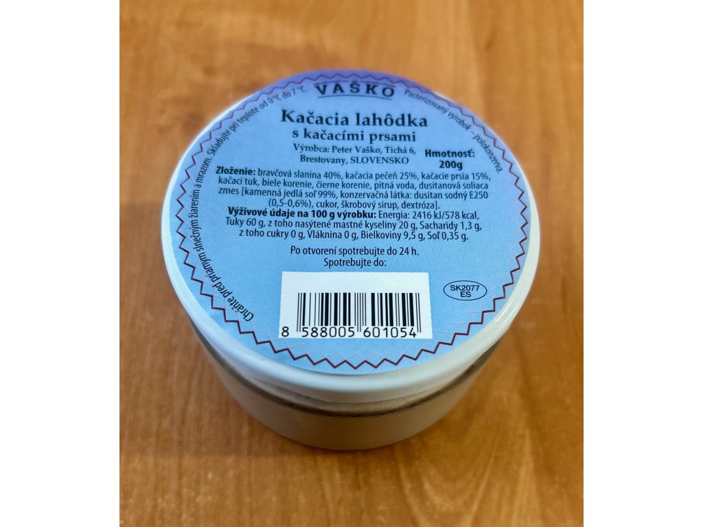 Lahodná kachní delikatesa s kachními prsíčky a játry v kombinaci s jemnou slaninou a kachním tukem. Bohatá, plná chuť pro milovníky tradičních pochoutek.