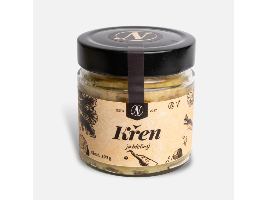 “Křen jablečný – jedinečná kombinace ostrého křenu a sladkých jablek, která dodá vašim pokrmům nezaměnitelnou chuť. Ideální ke grilovaným masům, sýrům či jako základ pro omáčky a pomazánky.”