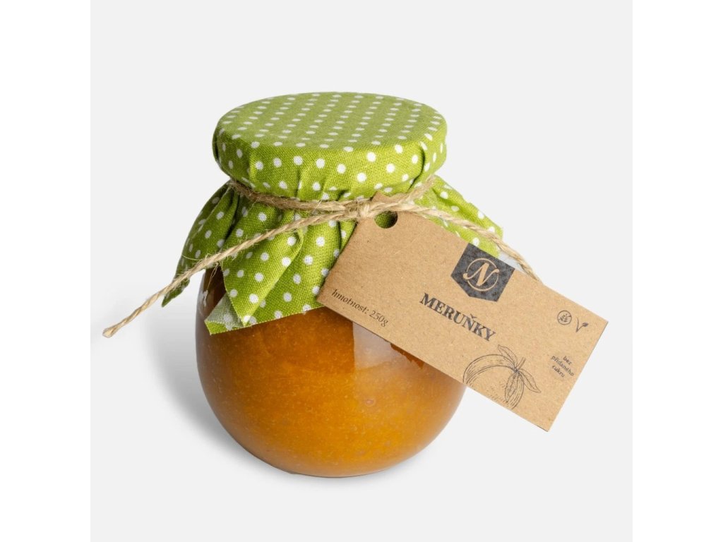 Složení: meruňky (95 %), pomerančová šťáva, citrónová šťáva, pektin.