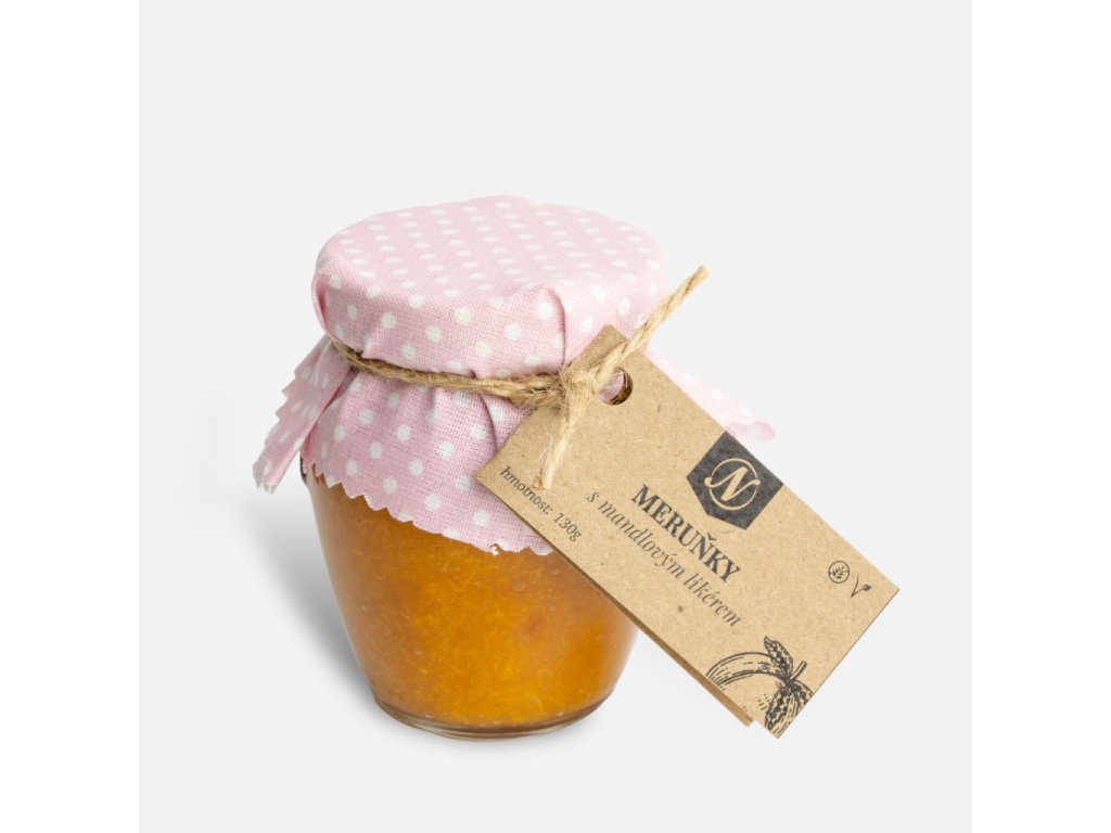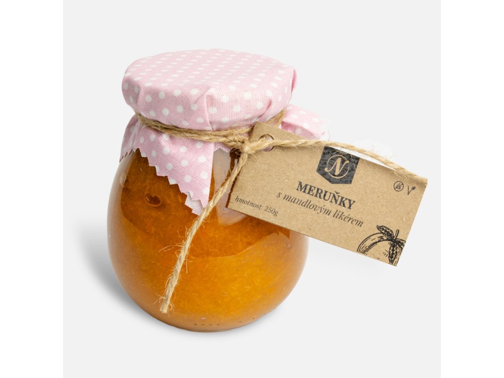 Složení: meruňky (84 %), cukr, citrónová šťáva, mandlový likér (1 %), pektin.